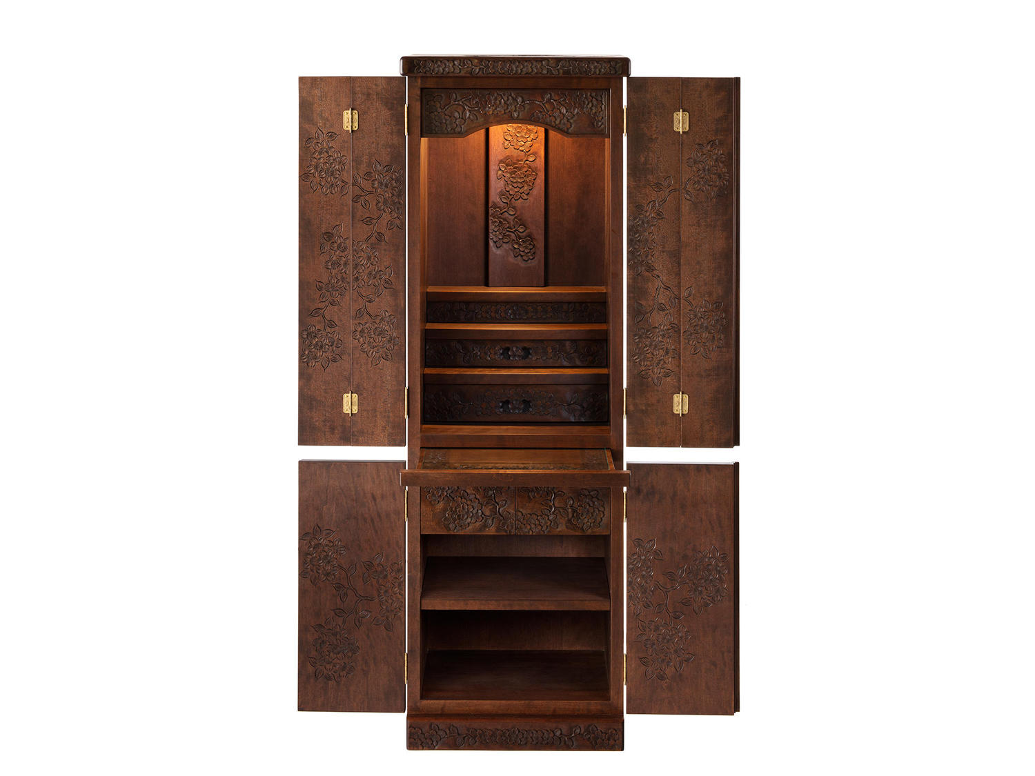 仏壇 ロングスリムタイプ 桜彫刻 LEDライト付