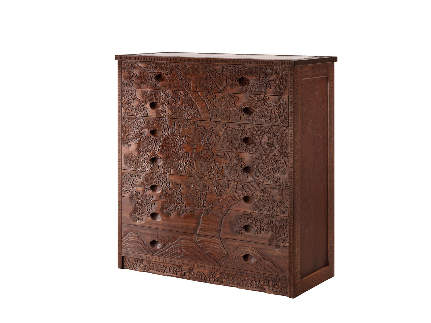 7段チェスト 桜彫刻