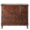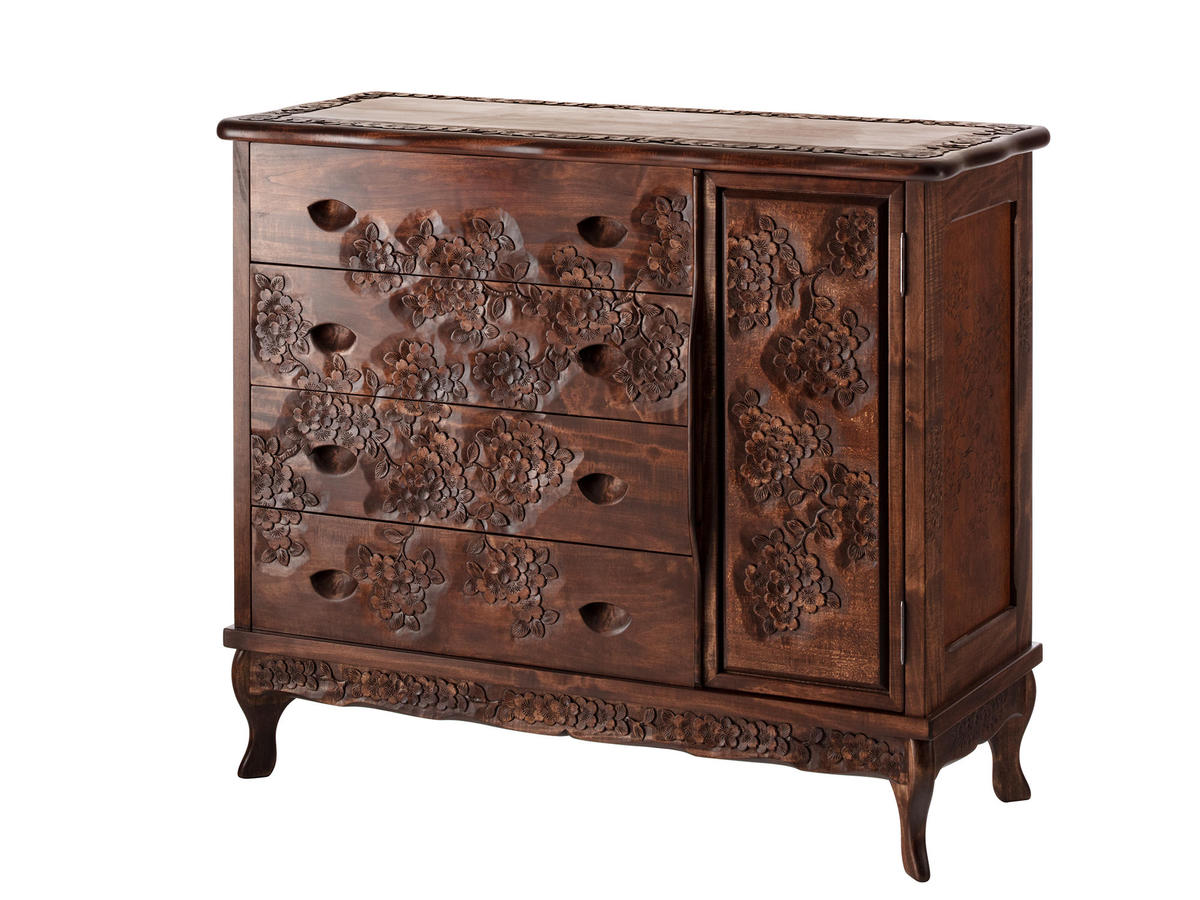 ネコ脚4段チェスト 扉付 桜彫刻